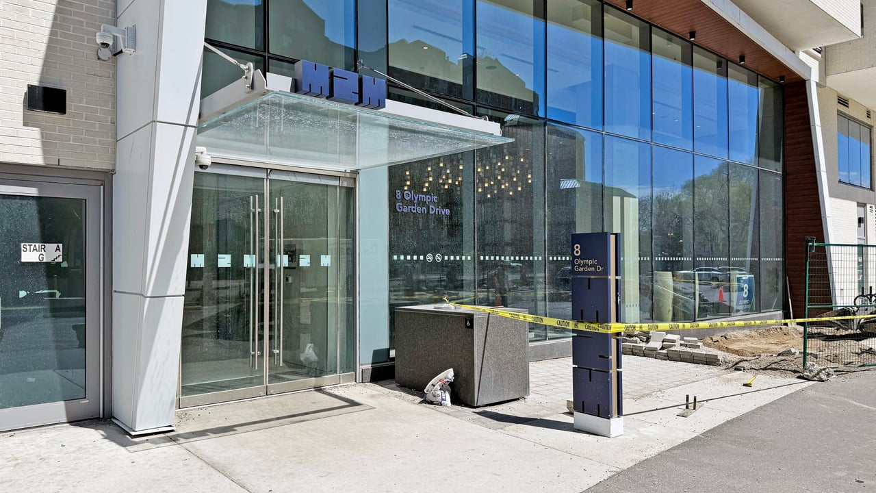 Welcome To 8 Olympic Garden Drive, Suite 906 - A Rare And Exceptional Three-Bedroom Corner Residence Featuring One Of The Largest Private Terraces In The Entire Building And Two Premium Side-By-Side Parking Spaces. This Bright, Modern Home Offers Floor-To-Ceiling Windows, Wide-Plank Flooring, And A Beautifully Designed Layout That Combines Style, Comfort, And Functionality.The Spacious Open-Concept Living And Dining Area Flows Seamlessly Onto A Massive Wrap-Around Terrace, Perfect For Outdoor Dining, Entertaining, Gardening, Or Simply Enjoying Panoramic Views Of The Surrounding Cityscape And Expansive Skyline. This Incredible Outdoor Space Truly Feels Like A Private Oasis In The Sky.The Sleek Contemporary Kitchen Features Integrated Appliances, Quartz Counters, A Large Island, And Ample Storage. All Three Bedrooms Are Generously Sized, Filled With Natural Light, And Designed For Maximum Comfort. The Primary Suite Offers A Walk-In Closet With Custom Organizers And Direct Access To The Luxurious Bathroom With Double Vanities And Modern Finishes. Residents Enjoy Access To A Full Suite Of Resort-Inspired Amenities Including An Outdoor Pool, State-Of-The-Art Fitness Centre, Yoga Studio, Theatre Room, Party Lounge With Catering Kitchen, Kids' Play Zone, Guest Suites, Concierge, And More.This Exceptional Offering Is Completed With Two Parking Spaces Positioned Side-By-Side And A Large Locker. Ideally Located Steps From Transit, Parks, Shopping, Restaurants, And Top Schools, This Is Urban Living At Its Finest. A Truly Rare Three-Bedroom Sanctuary With A Terrace That Must Be Seen To Be Fully Appreciated.